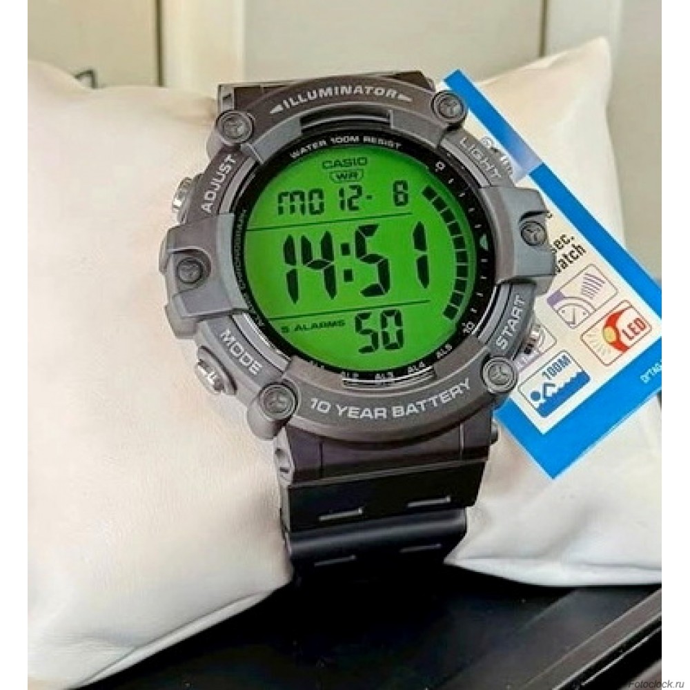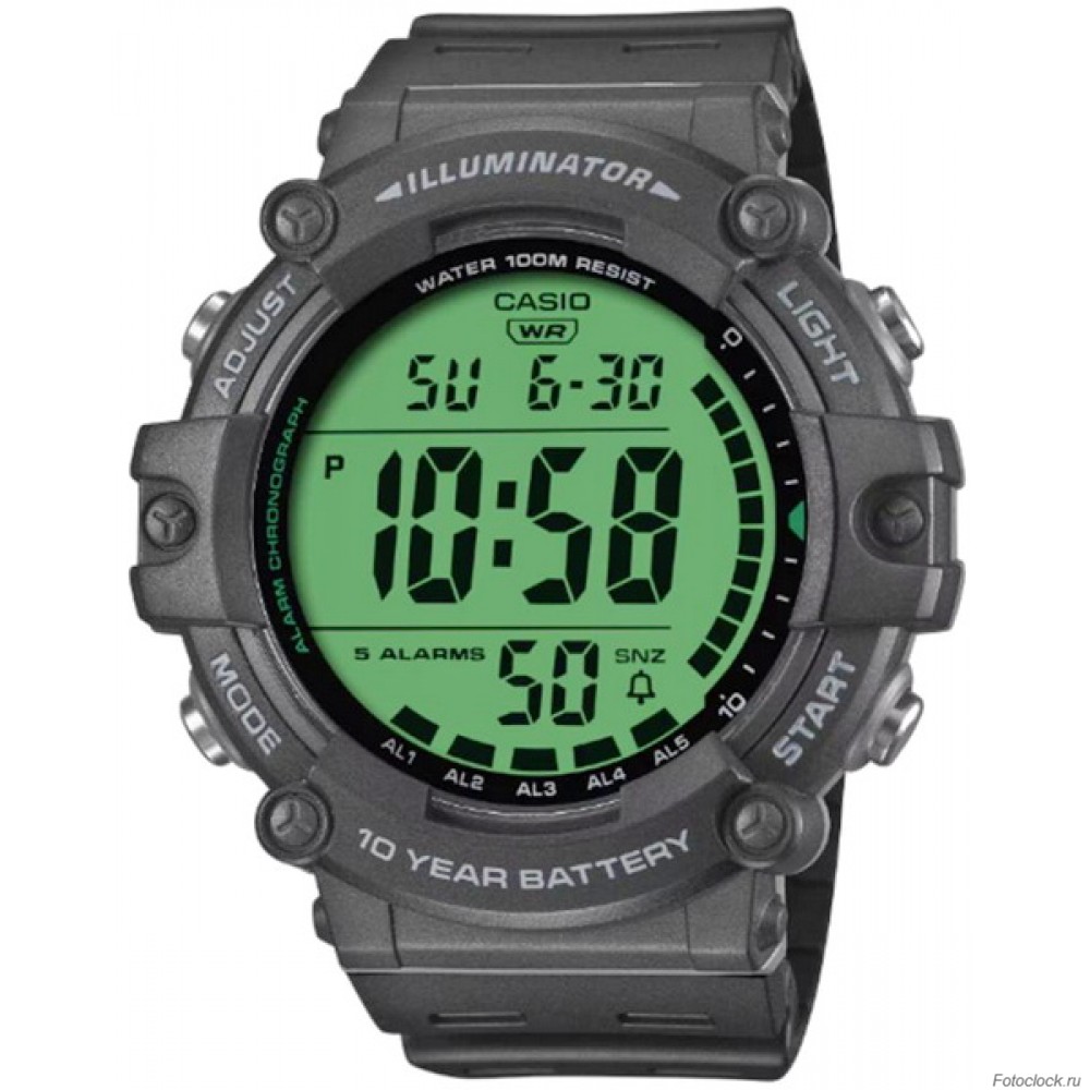 Материал корпуса/безеля: пластикПластиковый ремешокПластиковое стеклоВодонепроницаемость до глубины 100 метровУльтрафиолетовый светодиодсветиться послеДвойной режим временисекундомер 1/100 секундыДиапазон измерения: 23:59'59,99''Режимы измерения: прошедшее время, промежуточное время, 1-е и 2-е время окончанияОбратный отсчетЕдиница измерения: 1 секундаИнтервал обратного отсчета: 24 часаДиапазон настройки времени начала обратного отсчета: от 1 минуты до 24 часов (с шагом 1 минута и с шагом 1 час)Другое: автоповтор5 многофункциональных будильников (с 1 повторным будильником)Почасовой сигнал времениПолностью автоматический календарь (до 2099 года)Формат времени 12/24Регулярный хронометраж: часы, минуты, секунды, pm, месяц, день, деньТочность: ±30 секунд в месяцПриблизительный срок службы батареи: 10 лет для батареи CR2032.Размер корпуса: 54,4×51,2×15,7 ммОбщий вес: 57 г