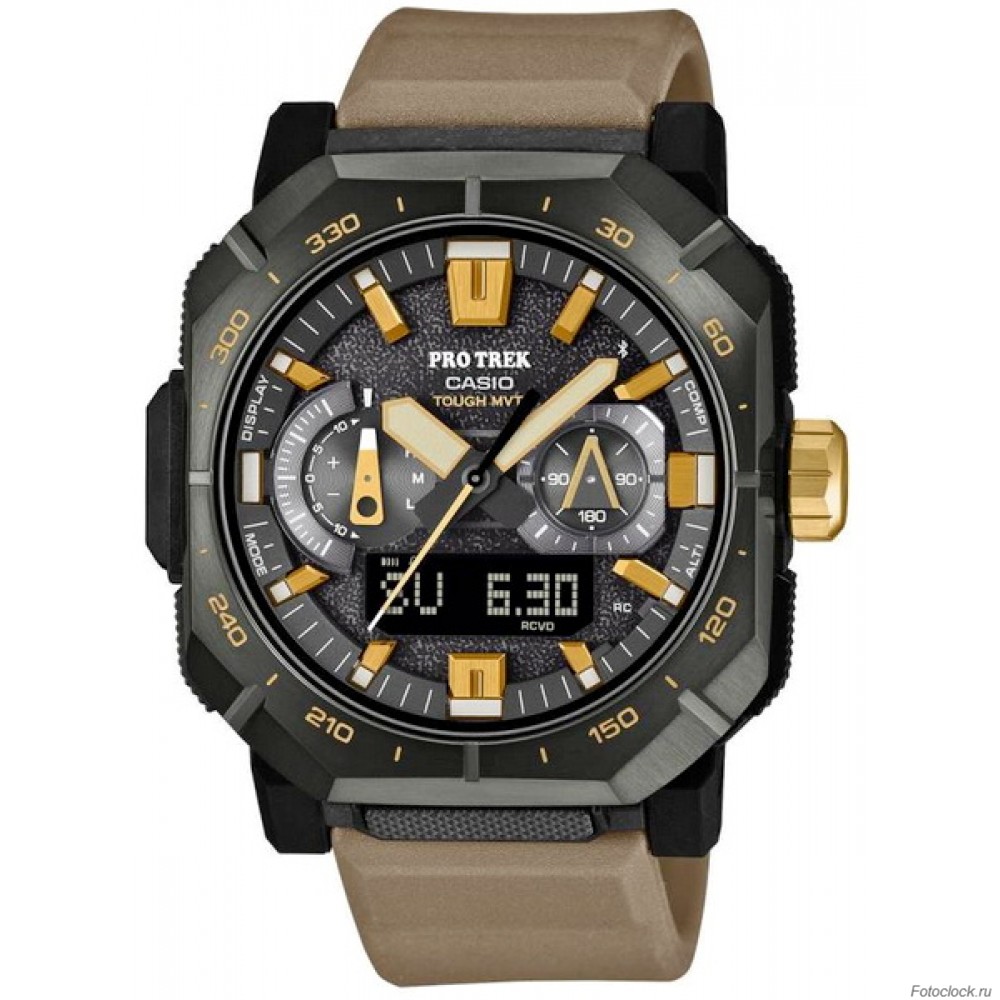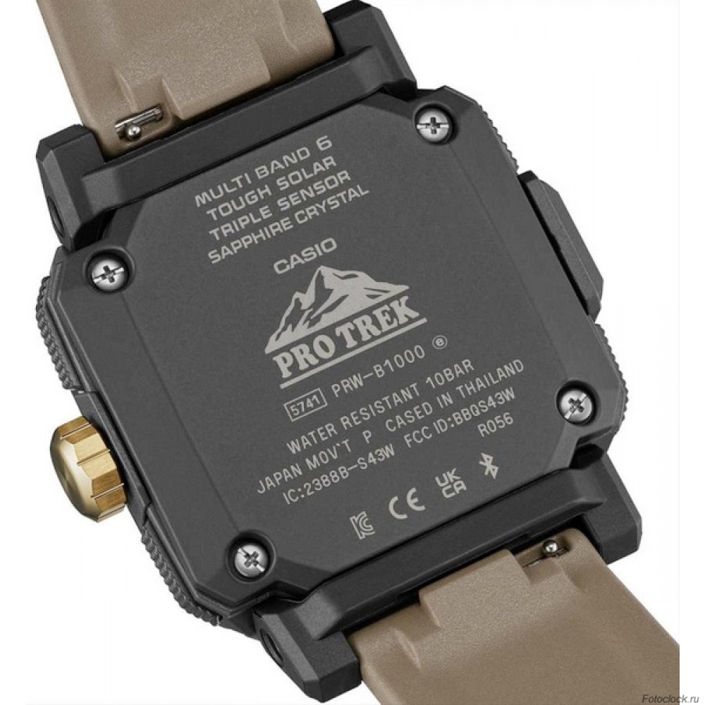 Tough Solar (зарядка от солнечной батареи)Радиоуправляемые часы (Multi-Band 6)Bluetooth® (подключение к смартфону) Точность: ±15 секунд в месяц (при приёме радиоволн и без подключения к смартфону) Размер корпуса: 50,8 x 45,8 x 14,3 мм Вес: прибл. 79 г Размер ремешка: 145–215 мм (ширина крепления: ок. 23,0 мм) Материалы: Безель: нержавеющая сталь / Корпус: биопластик (огнестойкий)Ремешок: целлюлозное нановолокно (CNF, песочно-бежевый) Стекло: минеральное Водонепроницаемость: 100 м Основные характеристики: ■ Ударопрочный / Прочный корпус с солнечной батареей ■ Поддержка 6 диапазонов (2 станции в Японии, Северной Америке, Европе и Китае) + Bluetooth® для коррекции времени ■Тройной датчик: - Компас (16 румбов, непрерывное измерение, коррекция времени) - Барометр (график изменения атмосферного давления/индикатор разницы атмосферного давления) - Альтиметр (от -700 до 10 000 м, относительная высота, суммарный подъём/спуск, память) - Термометр (-10 до 60°C) ■ Подключение к смартфону: индикатор местоположения / журнал маршрута / мировое время (примерно 300 городов) / время и место / поиск телефона и т. д. ■ Мировое время (основной блок): 38 городов + UTC, переключение между домашним и мировым временем ■ Секундомер (формат времени 1/100 секунды, 24-часовой, сплит-формат) / таймер (до 60 минут с шагом в 1 секунду) ■ 5 будильников и почасовой сигнал / функция перевода стрелок / автоматическая коррекция положения стрелок ■ Полностью автоматический календарь / 12-часовой/24-часовой формат отображения времени / включение/выключение звука работы ■ Двойная светодиодная подсветка: подсветка циферблата и ЖК-дисплея (супер-подсветка, 1,5-секундное/3-секундное послесвечение, полностью автоматический режим) ■ Срок службы батареи: около 6 месяцев (при обычном использовании) / около 24 месяцев Месяцы (в режиме энергосбережения) Гарантия: Гарантия производителя 1 год Аксессуары: руководство по эксплуатации / гарантийный талон / специальная коробка