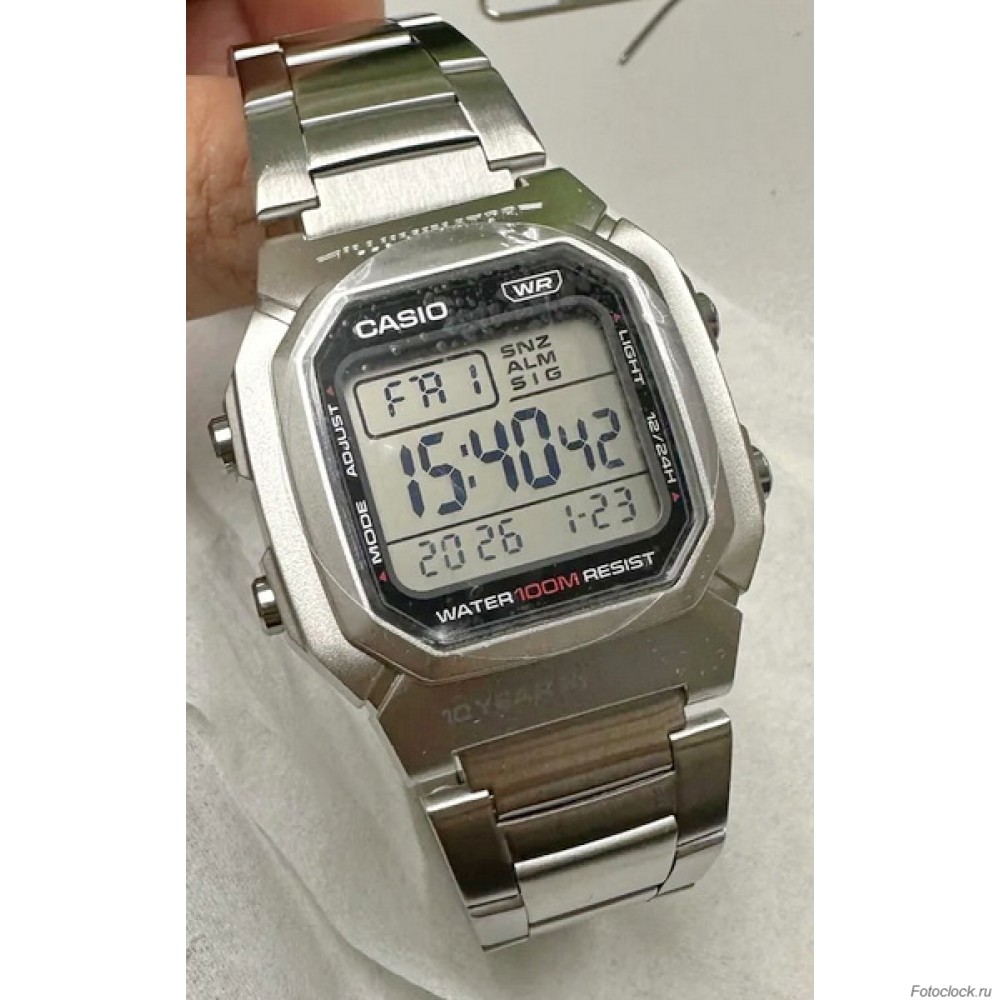 Мужские наручные электронные часы с секундомером, будильником и подсветкой.Тип механизма: кварцевые Браслет: нержавеющая сталь.Корпус: пластик.Циферблат: электронный.Водозащита: 100м Подсветка.Звуковой сигнал: будильник. Секундомер.Двойное время: отображение времени в другом часовом поясе.Размер корпуса 44.2x36.8x13.4 мм Срок службы батареи около 10 лет.